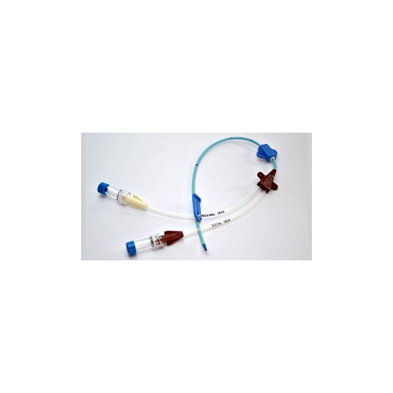 Cateter em Poliuretano II, termo-sensível e biocompatível; ponta macia e flexível Arrow Blue Flex Tip®. Fio guia metálico graduado com ponta em J e dispositivo Arrow Advancer™ para a progressão do fio guia; Seringa de Raulerson Arrow® com embolo vazado e valvulado para a passagem interna do fio guia sem desconexão da agulha; Clamps extras com aletas de fixação;Látex Free