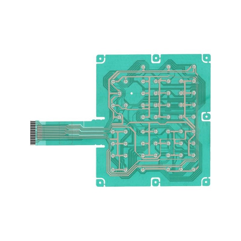 Os circuitos flexíveis são compostos por camadas de polyéster com impressão de pasta condutiva de prata. Não possuem o painel ilustrativo pois os contatos são fechados por um conjunto mecânico de teclas rígidas ou de silicone.