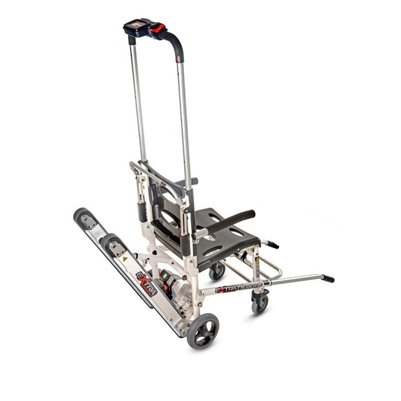 A verdadeira inovação do Extra Ergolift é dada pelo motor elétrico que move as trilhas para cima e para baixo pelas escadas sem qualquer esforço do operador.