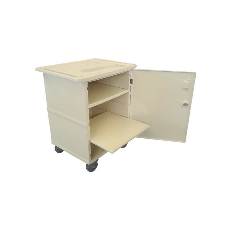 CARRO EM FIBERGLASS PARA TRANSPORTE - 01 PORTA 03 PRATELEIRAS RODÍZIOS 04"