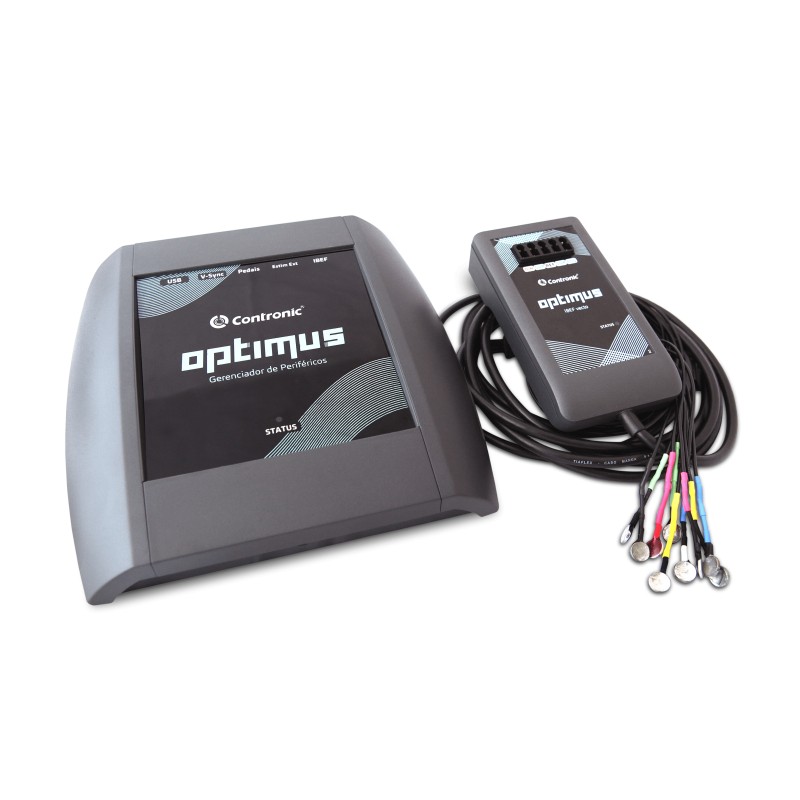 Alimentação do equipamento é feita pelo computador que executa o software Optimus, através de cabo USB, dispensando o uso de fontes de alimentação ligadas diretamente a rede elétrica.