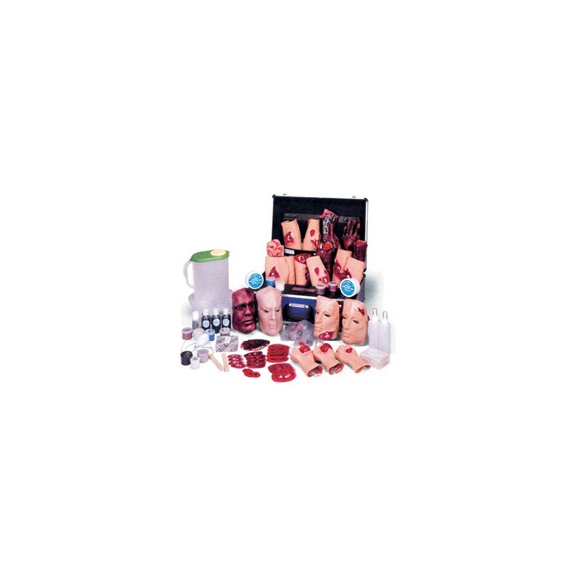 O Kit de Simulação de Feridas E.M.T. foi concebido especialmente para a formação de profissionais de saúde na área de medicina de emergência e contém ferimentos artificias que podem ser fixados tanto em “pacientes“ vivos ou em bonecas de treinamento; o kit cobre um amplo leque de ferimentos diferentes. Os ferimentos artificiais podem ser amarrados, colados, modelados com cera, e alguns ferimentos emitem sangue artificial. Este kit pode ser empregado para a formação tanto de leigos que desejam aprender medidas de primeiros socorros como também de profissionais de saúde e pode ser utilizados para demonstrar o atendimento a vítimas de queimaduras, lacerações, fraturas do braço e da perna, amputações, etc. O Kit de Simulação de feridas E.M.T. é excelente para simular catástrofes em locais públicos, por exemplo, acidentes de ônibus ou explosões em prédios. O kit é fornecido numa maleta de transporte.