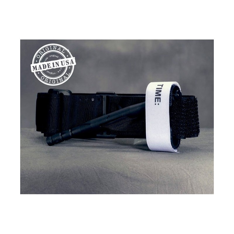 Torniquete ajustável para controle de hemorragias nas extremidades inferiores e superiores. Possui sistema de fechamento único que permite uma aplicação extremamente rápida e remoção suave resultando em menor perda sanguínea, com barra para sua estabilização que mantém sua integridade e diminui o pinçamento da pele cor Azul.