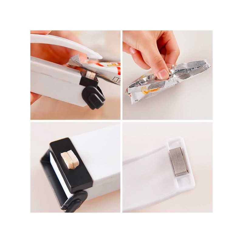 Salgadinhos que você consumiu apenas uma parte e pretende consumir o restante mais tarde ficam conservados como se o saco tivesse acabado de ser aberto. Qualqer outra embalagem plástica também pode ser selada em segundos, tanto de alimentos, como de qualquer outro produto.